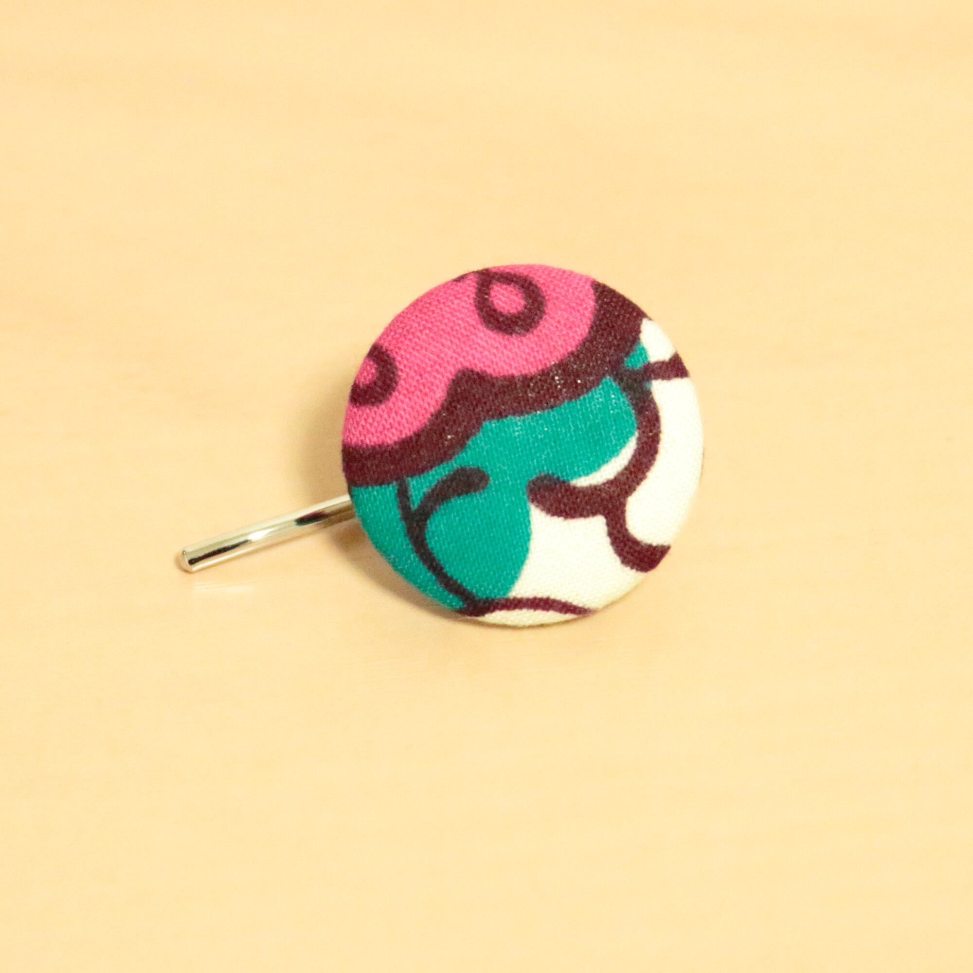 元気が出るカラフルなアフリカ布くるみボタンのポニーフック。